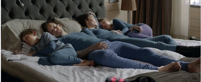 El retrato de la familia los muestra unidos por un afecto sincero. Así, se los ve juntos la mayor del tiempo que pasan en el centro de esquí, y disfrutando de la mutua compañía. La foto que acompaña estas líneas, correspondiente a una de las escenas del filme, con los cuatro miembros acostados en la misma cama, es un síntoma claro de esa intimidad compartida.