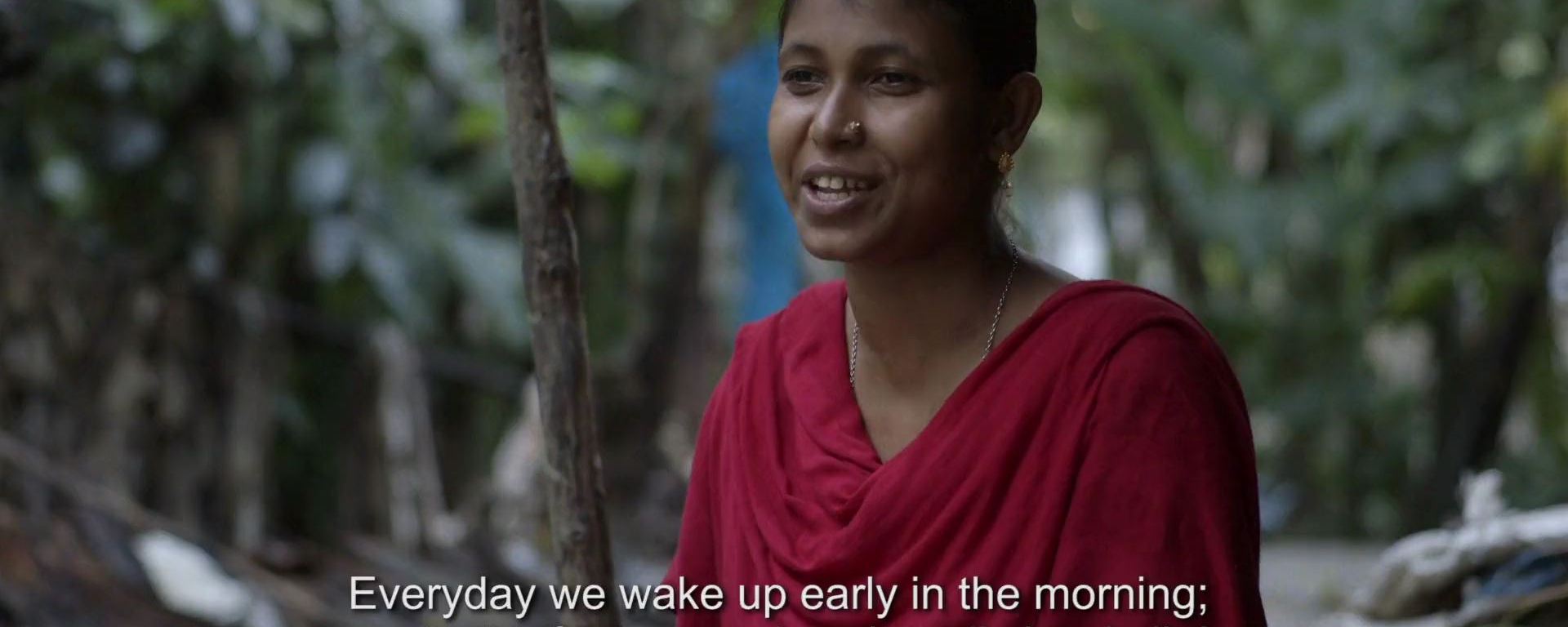 El filme cuenta con gran número de entrevistados claves, desde obreras de los talleres en Asia hasta economistas que explican la forma de funcionamiento del mercado. También escuchamos la palabra de empresarios de Bangladés y de otros que en Occidente, tratan de promover el denominado comercio justo.