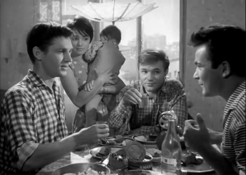 Khutsiev filma con maestría los diálogos, y hace cosas muy originales. Nunca recurre al plano y contraplano, sino que siempre están en escena los participantes. Hasta filma una original conversación entre tres personas, que de a ratos son cuatro,  cuando con un breve paneo incorpora a la escena a una chica sentada en otra mesa. (Ver video siguiente)